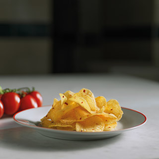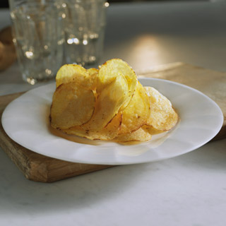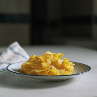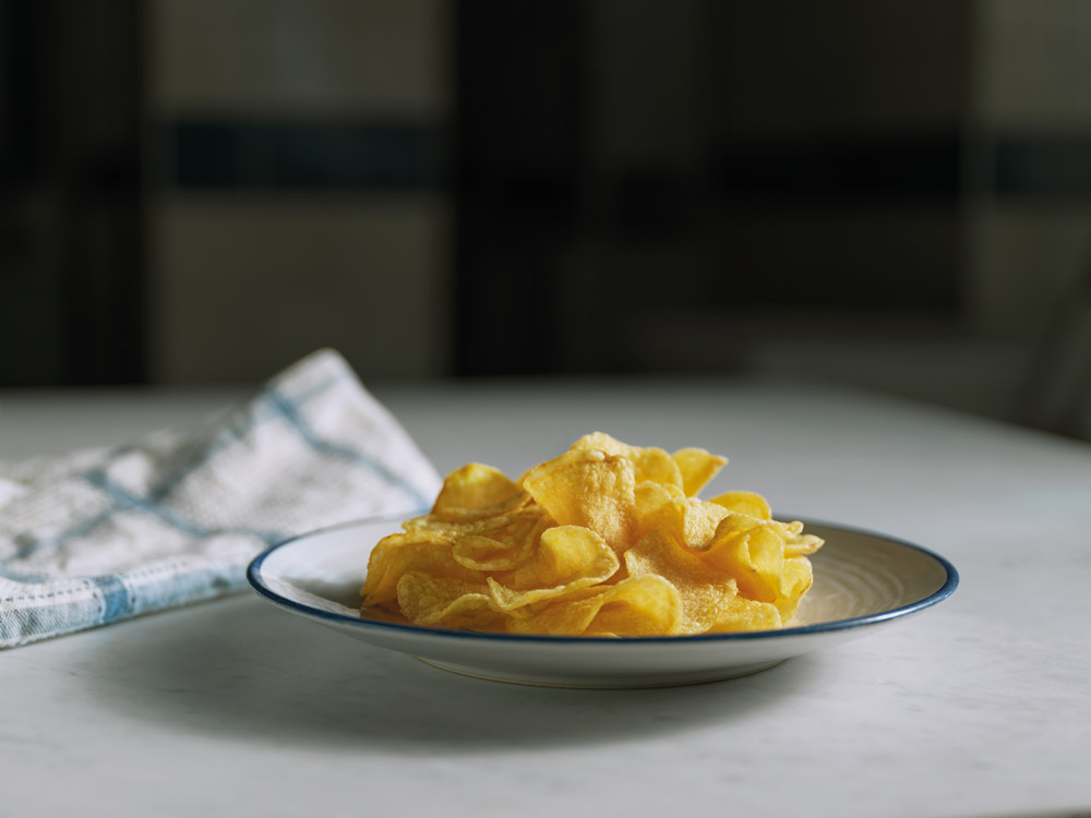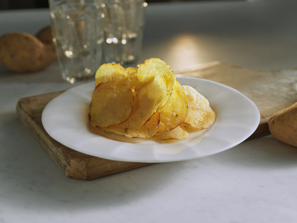 Le patate migliori vengono selezionate accuratamente, lavate in acqua corrente e, dopo la pelatura, tagliate in fette sottili. Le fette vengono poi cotte lentamente a diverse temperature e solo quando sono perfettamente dorate, arricciate e croccanti si spolverano con un pizzico di sale.